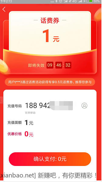 亲测淘宝0元充值1元话费秒到 最高可得20元话费礼包