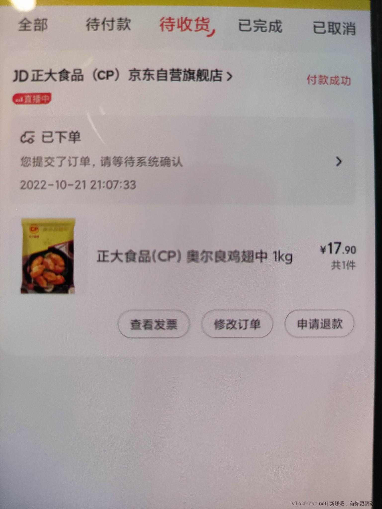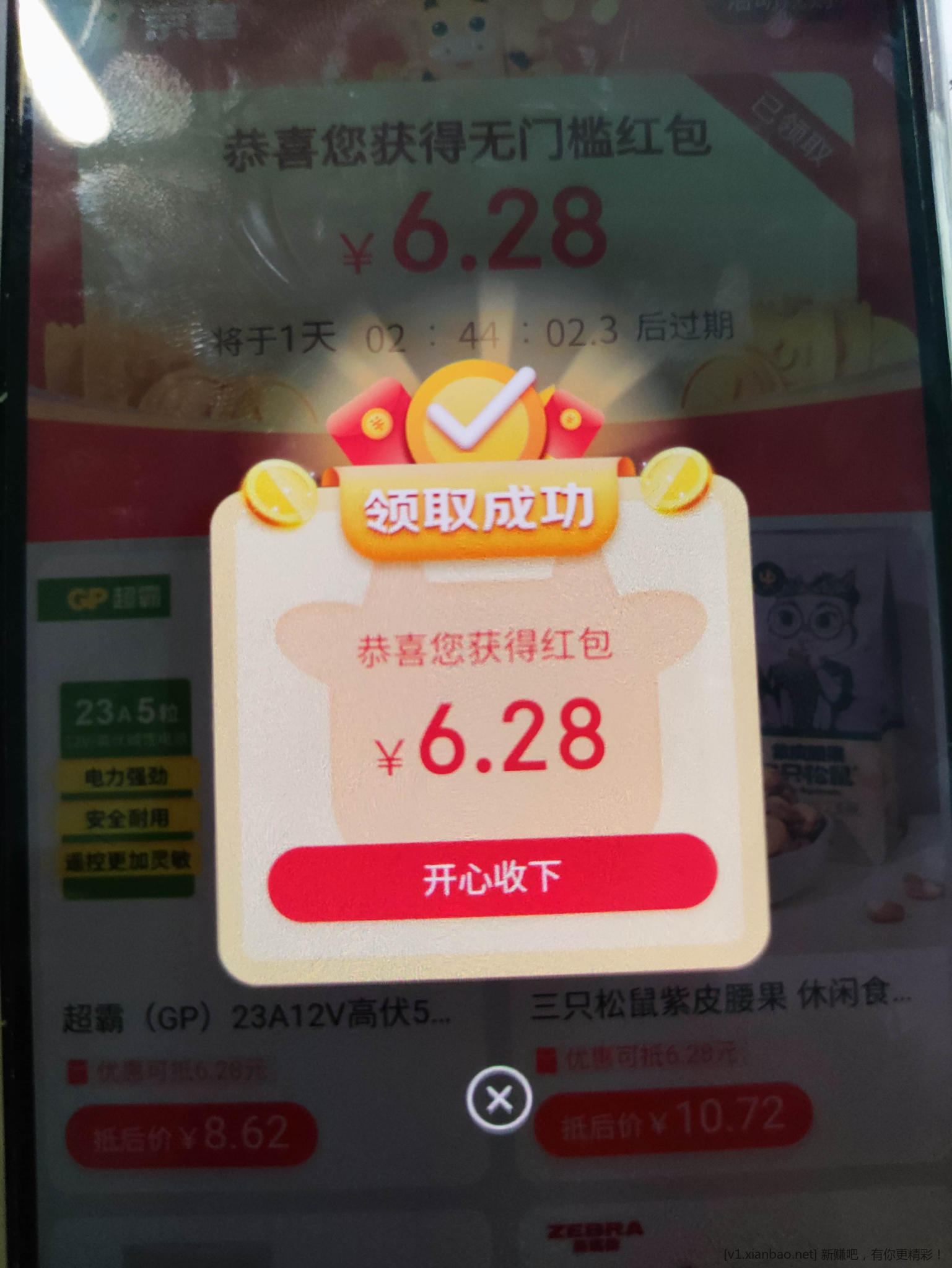 刚买了一单翅,买完以后弹了6.28无门槛红包