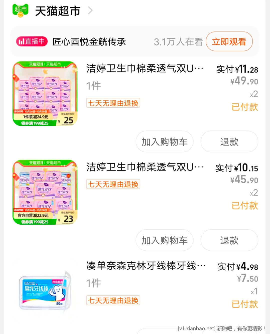 洁婷58片和洁婷50片今日疯抢价分别是20.9元和21.9元,领取2元优惠券,各加购两件,凑单一件牙线,页面领取199-40元优惠券,分别11.28元一件,50片到手10.15一件,牙线线4.98元,算下来平均2毛一片,全部是245的,非常划算