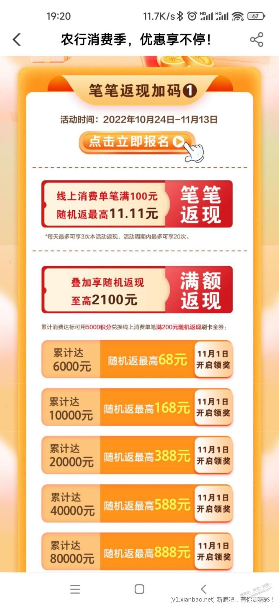 大毛!农行xing/用卡网购返现新活动