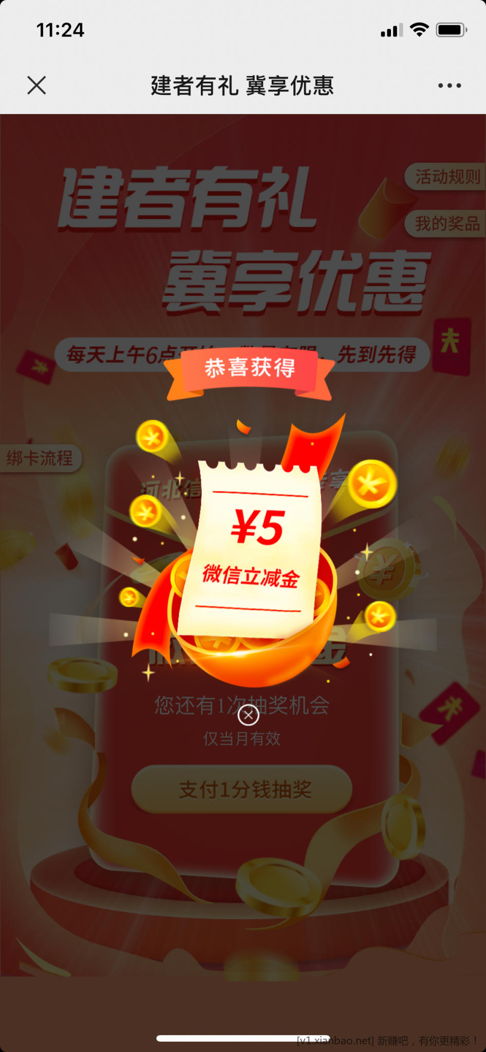 规则自己看,支付3次1分中3张5元立减金