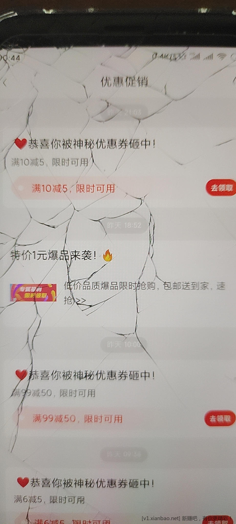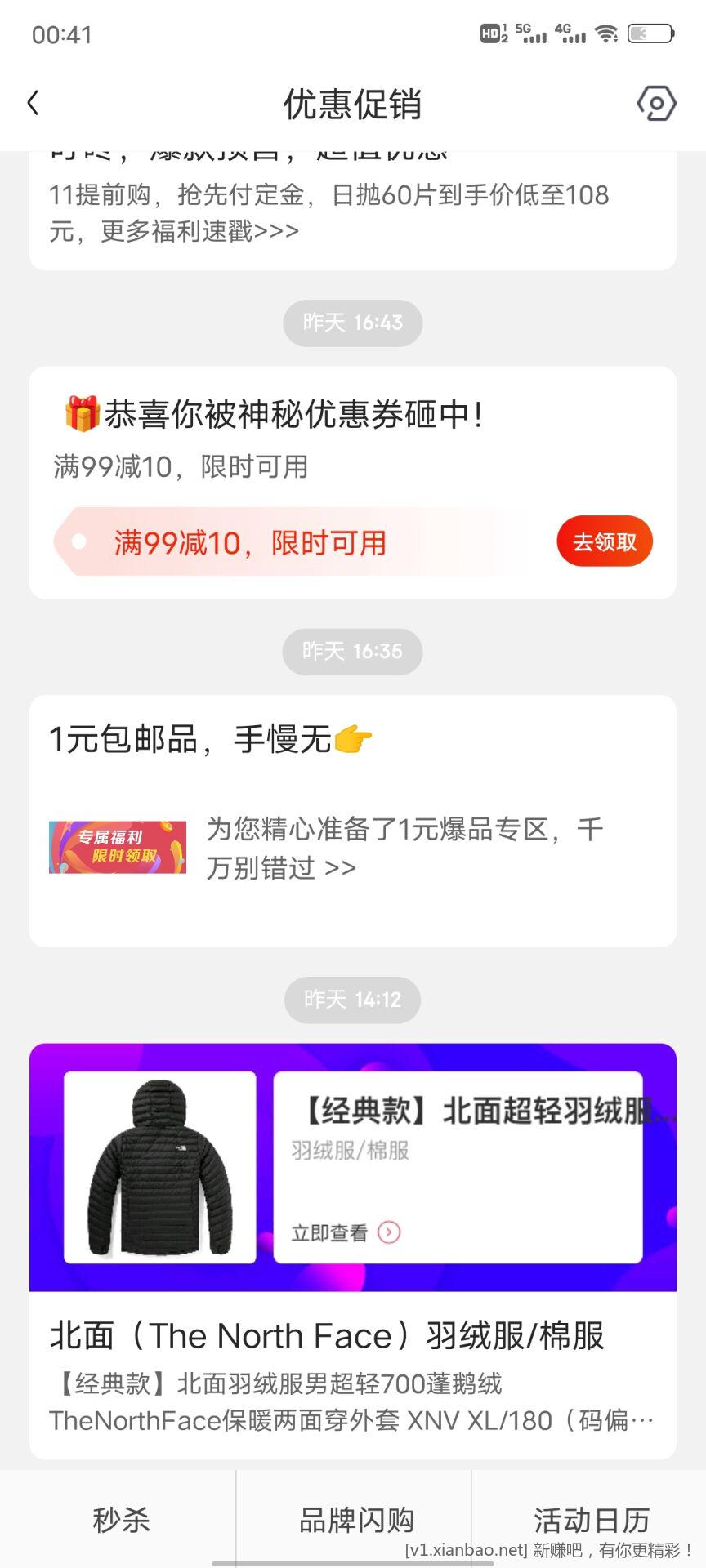 东子app 消息-优惠促销-下拉-一元爆品之类