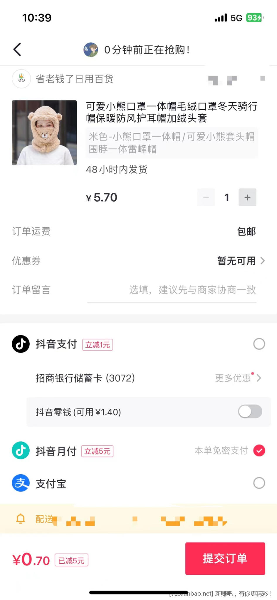 小熊帽子速度~7毛包邮~