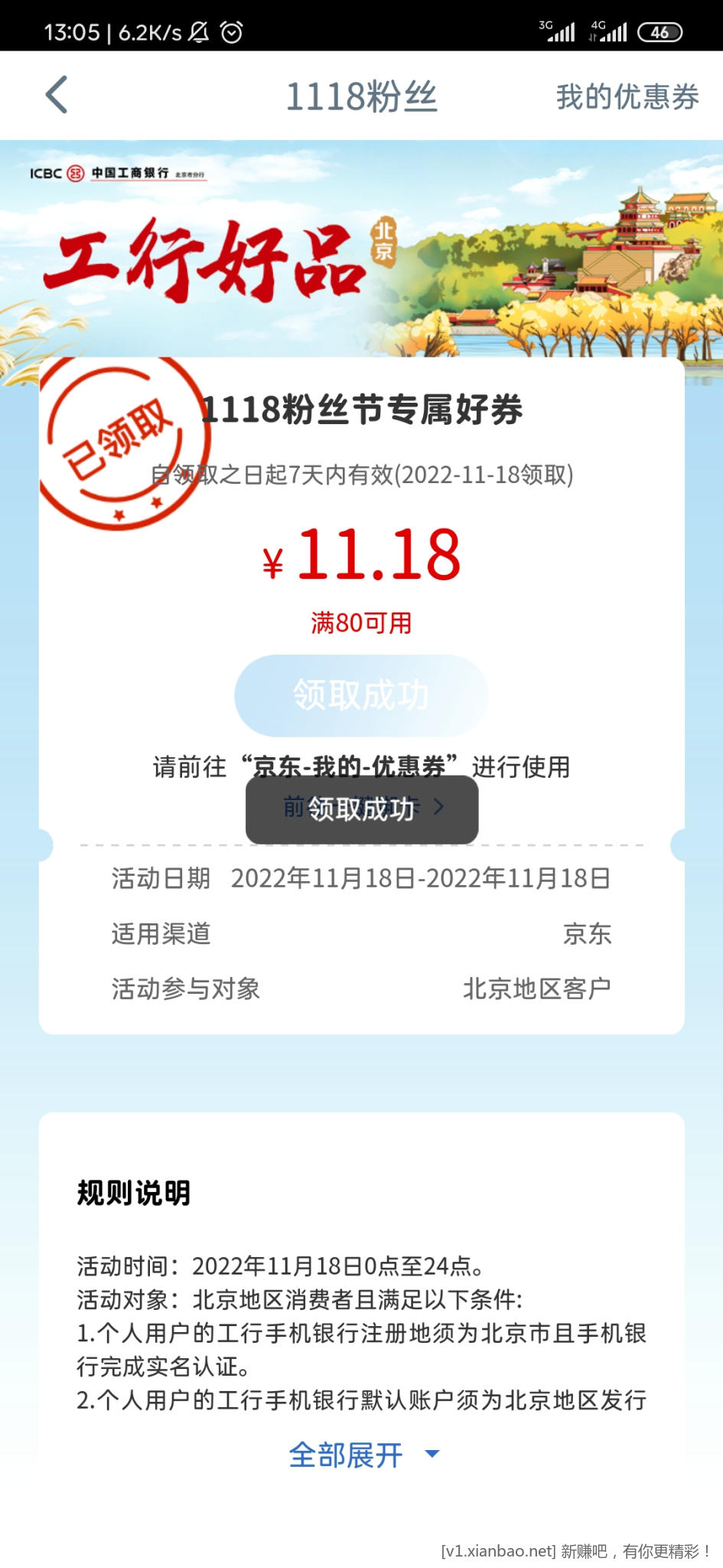 北京地区,搜 工行消费季 得 京东80-11.18优惠券