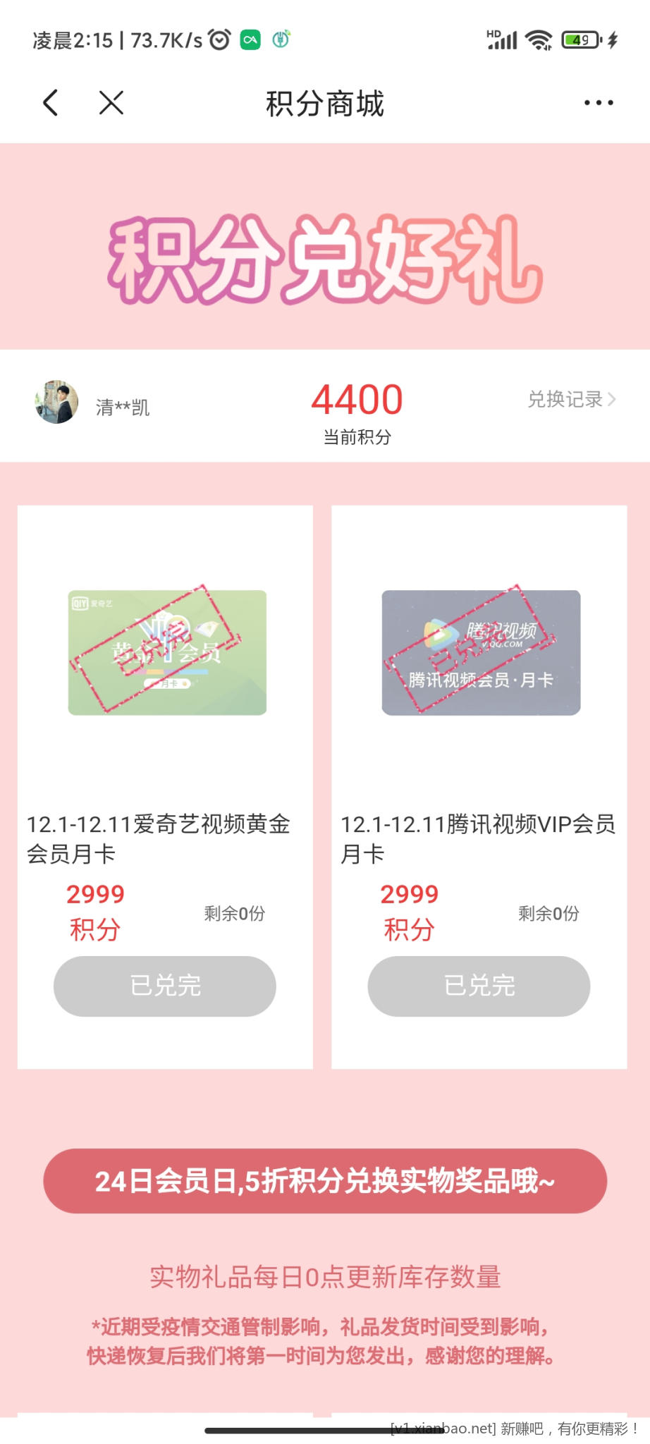 以得到2000积分(生日当天才行,所以你填你领取的