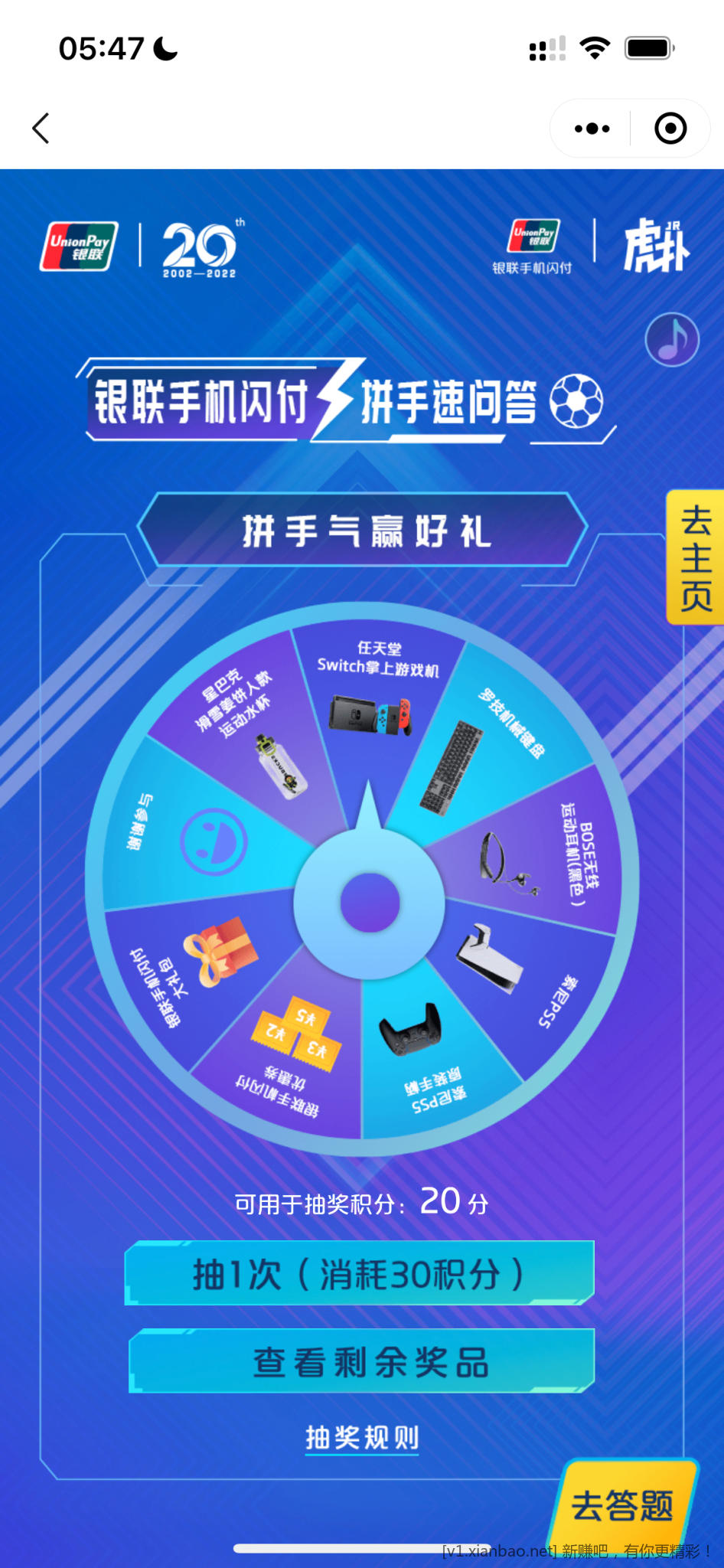银联闪付转盘抽奖目前必中,入口在二楼