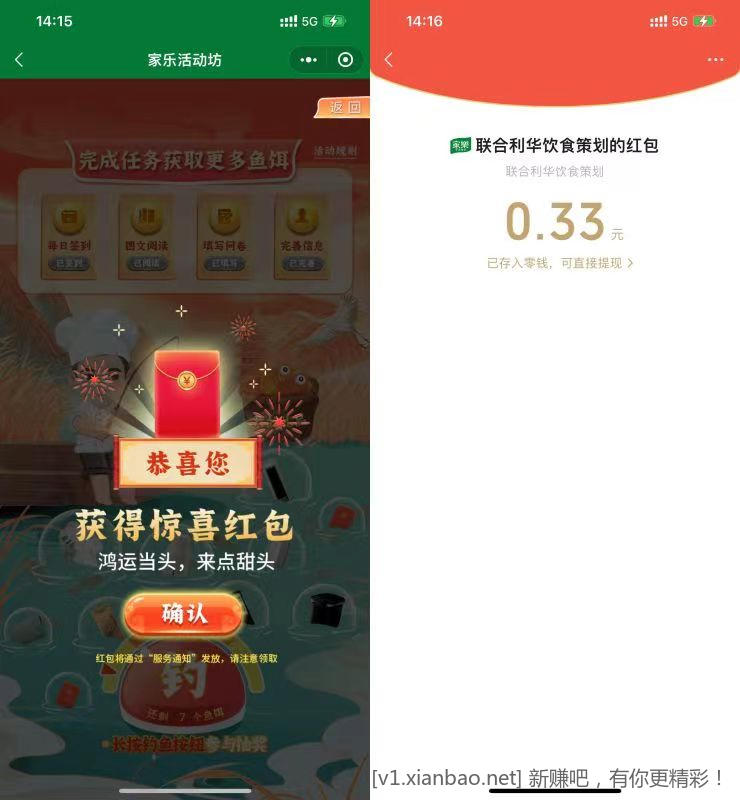 打开地址进入活动->随便点一下立马返回得次数->抽中红包秒到