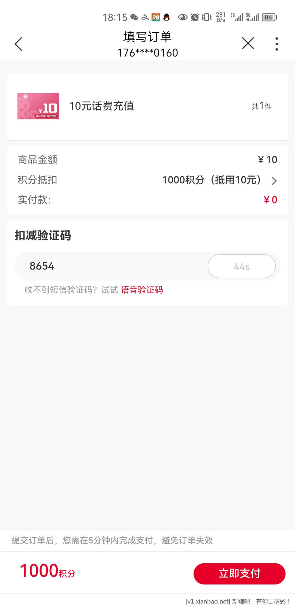 5冲10话费