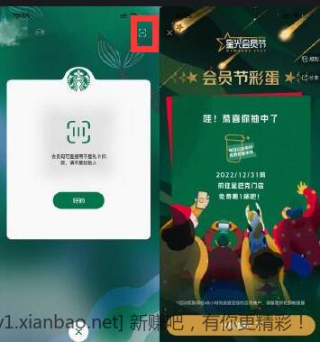 星巴克app扫星星图片 可以免费得一张咖啡券