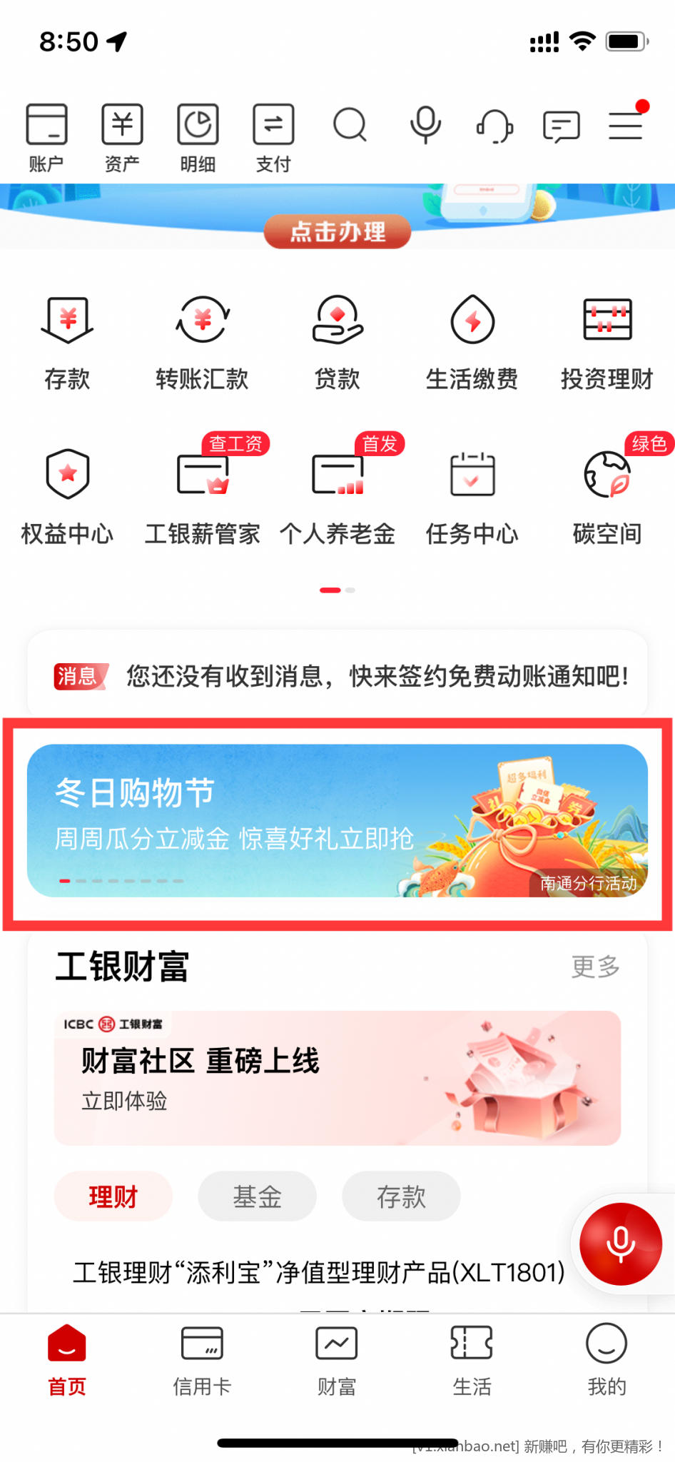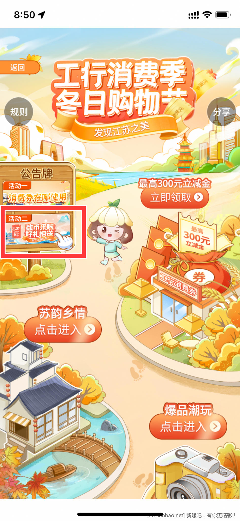 路径:工行app-首页冬日购物节-左侧数币来拉