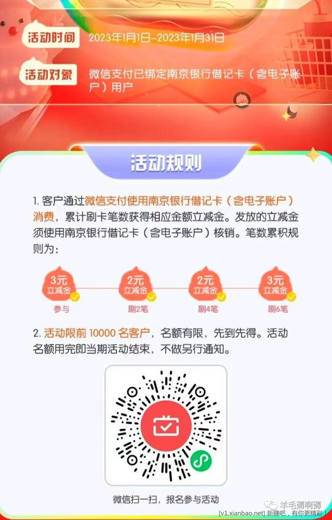 今晚0点,识别下方二维码领10元南京银行立减金,只有1万名额。