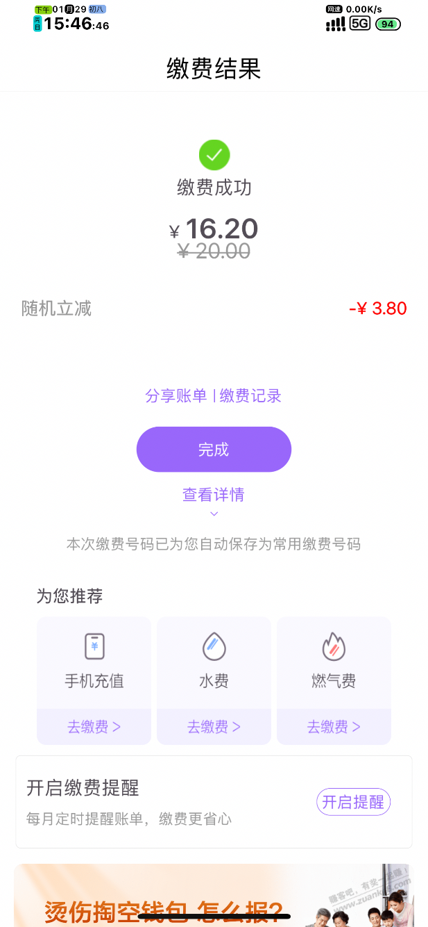 APP或云小程序用“微信支付”或“缴费钱包”充20享2.8-18.8立减。