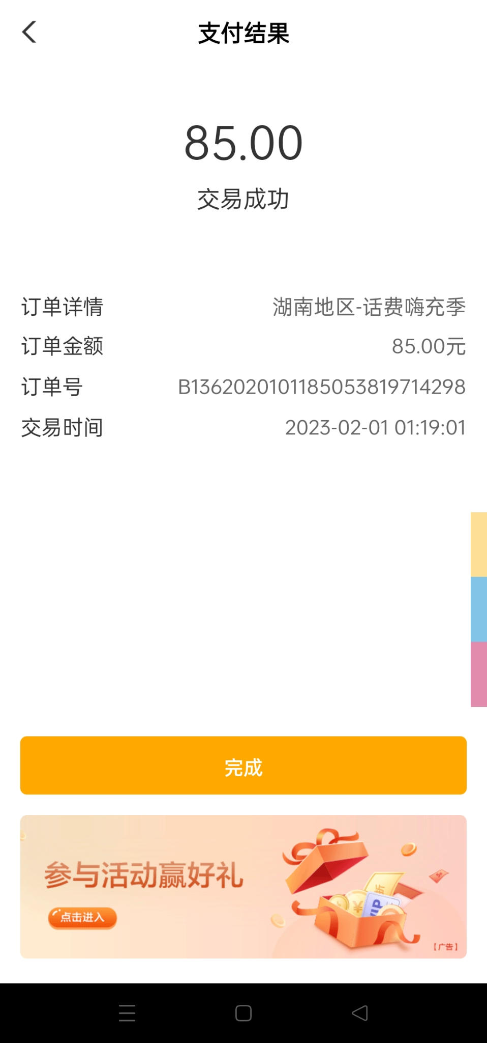 农业银行湖南城市专区,充话费随机立减÷3.8立减金