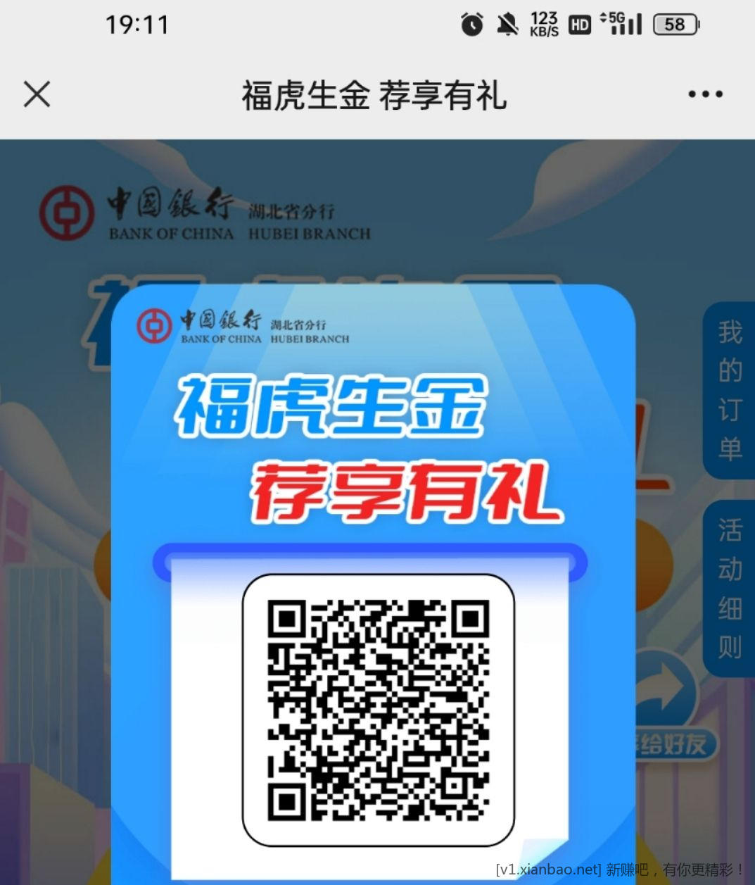 湖北中行立减金cxk,入口扫码0.01直接抽,
