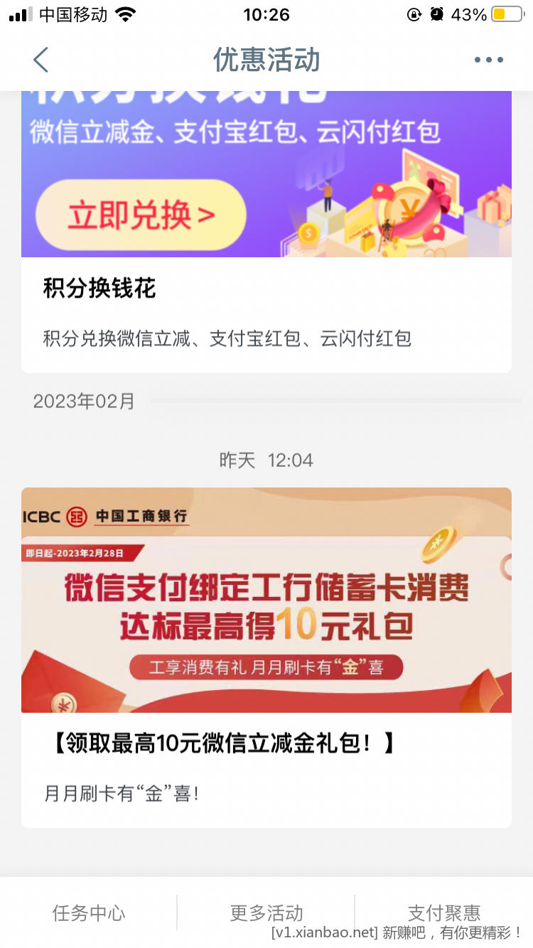 工行储蓄卡5元立减金