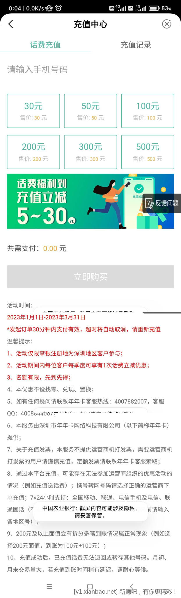 农行小毛,冲30减了5块,首页,生活,本地商城