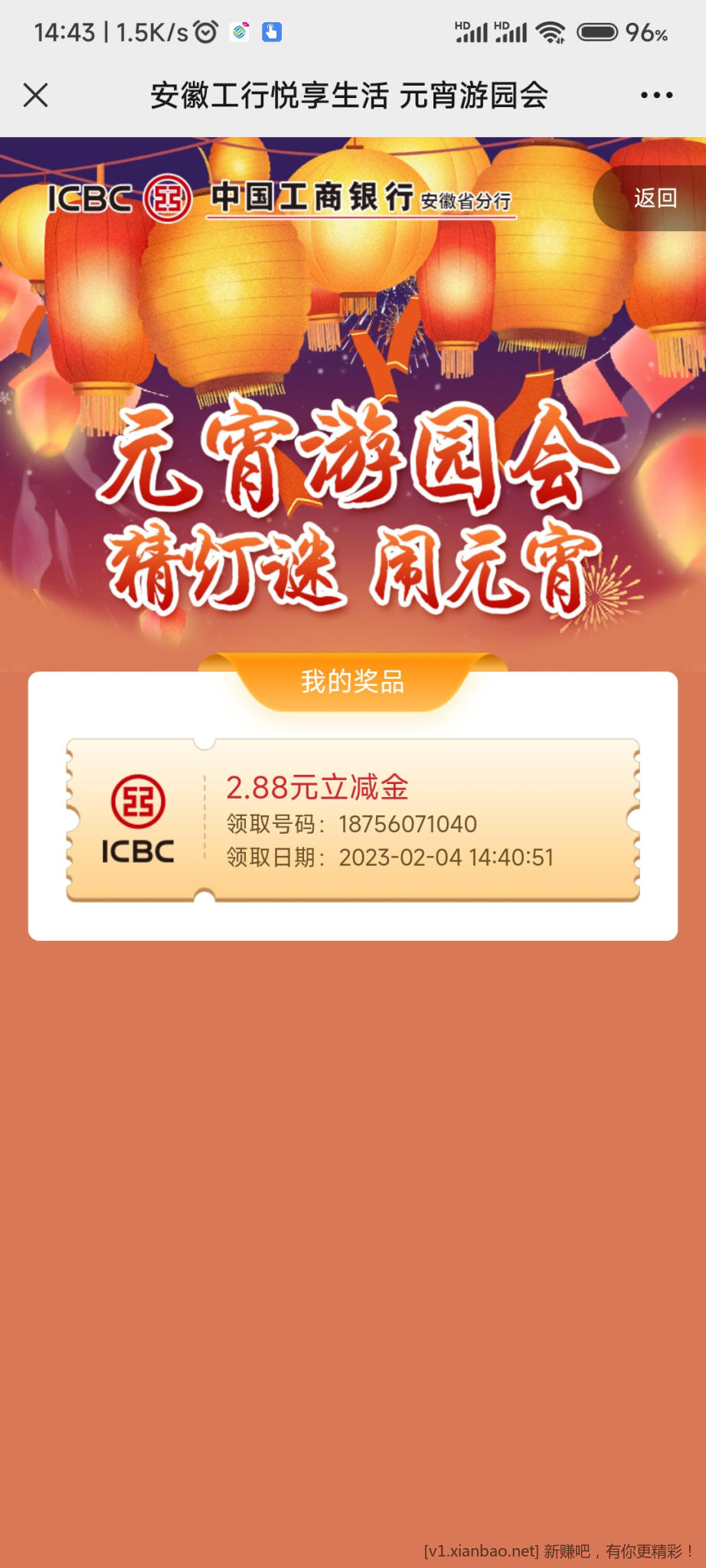 工行安徽公众号简单答题抽奖,实测2-2立减金