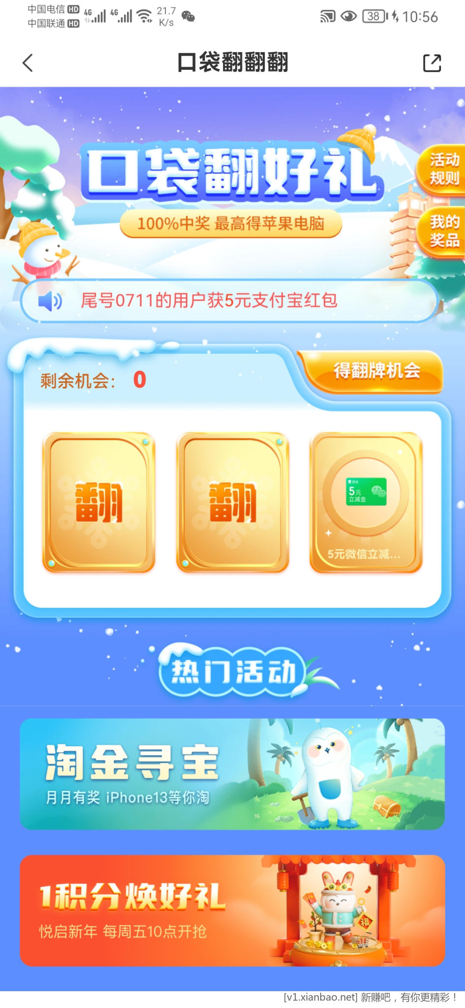 1,首页下边的轮播图:口袋发财兔。进去翻2次。
