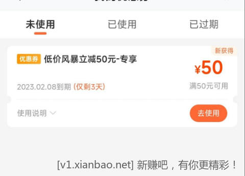 去我的优惠券看看,给了一张50立减券,感觉没啥好的作业