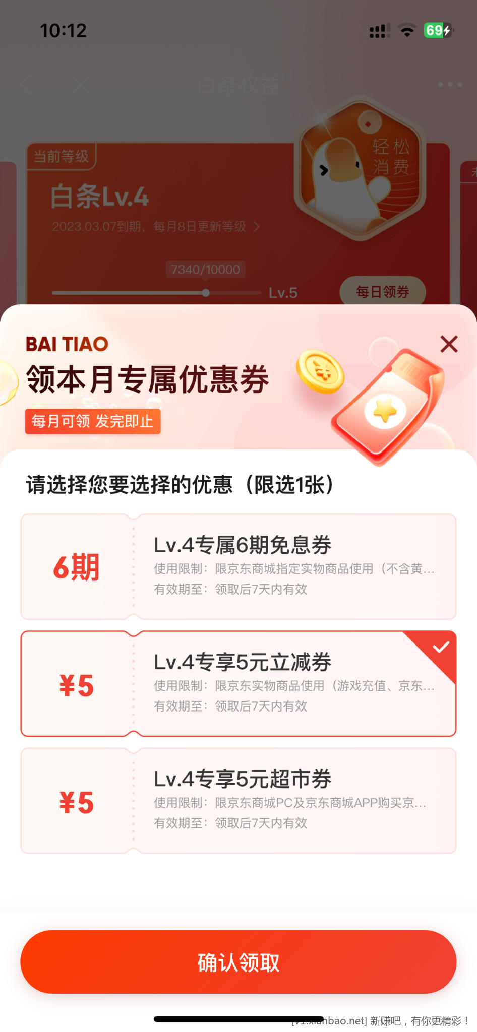 京东白条权益券,LV4可领5元