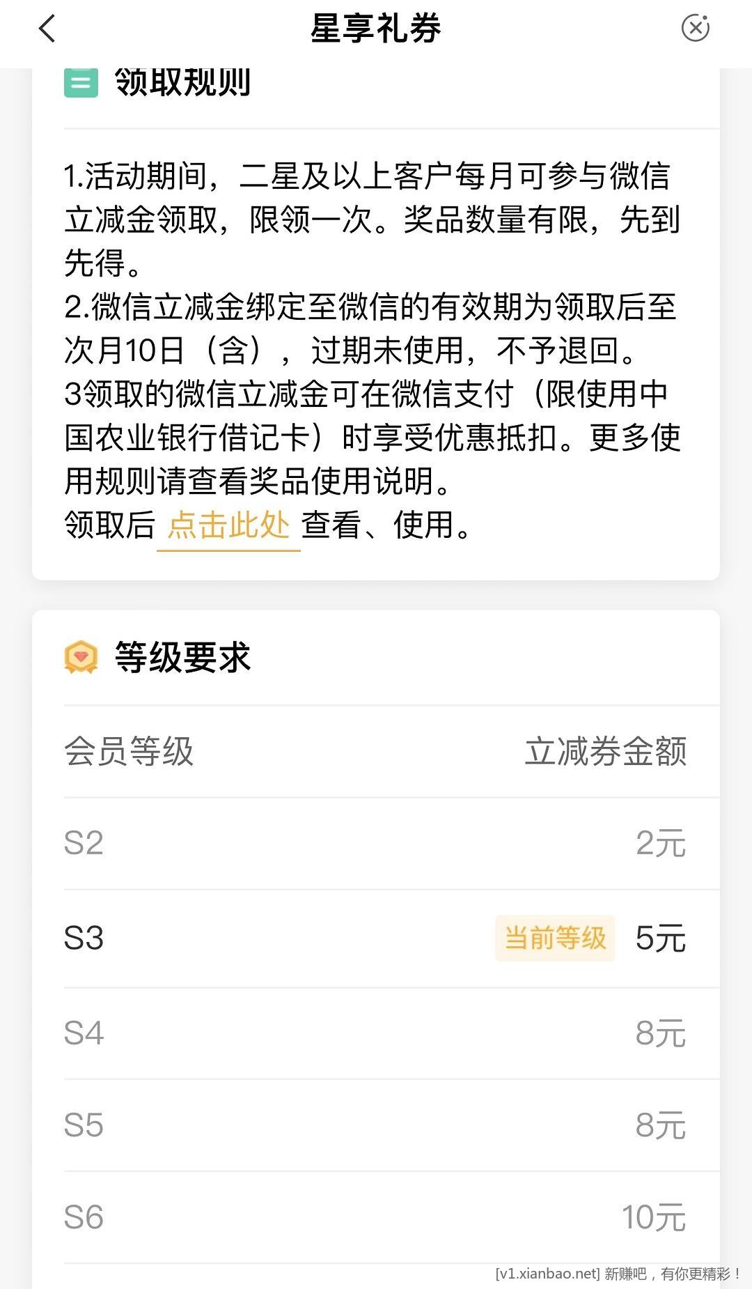 农行app s2 有微信立减金