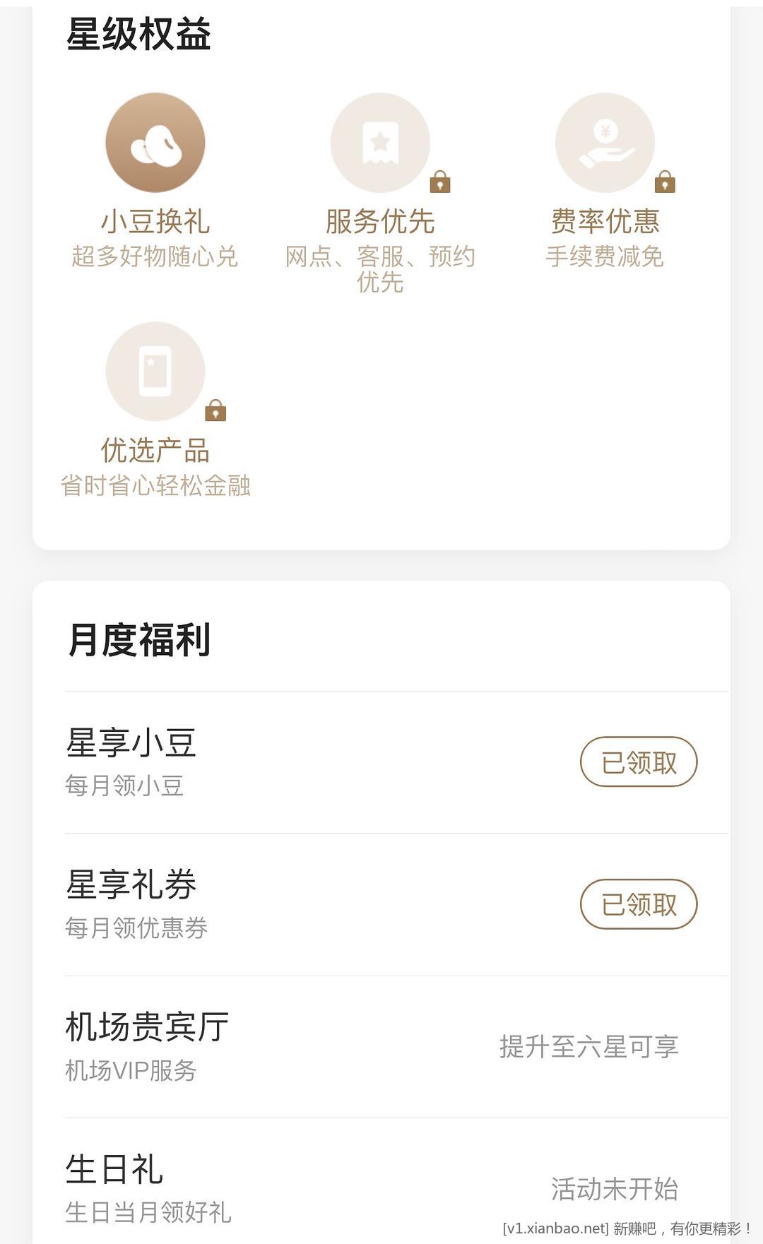 农行app -我的,点击星级那块-月度福利-星享礼券,星享小豆可以得豆