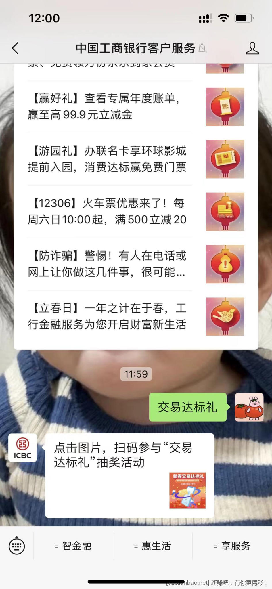 公众号-中国工商银行客户服务-发送 交易达标礼