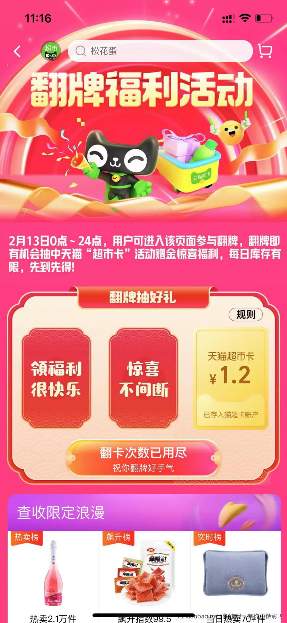 猫超 搜 翻牌福利 抽到1.2