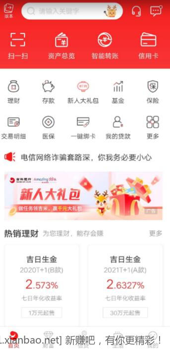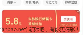 红包1:——吉林银行app-注册开一个二类卡-给新卡充值5毛激活一下账号-完事绑定支付宝秒到5.8红包