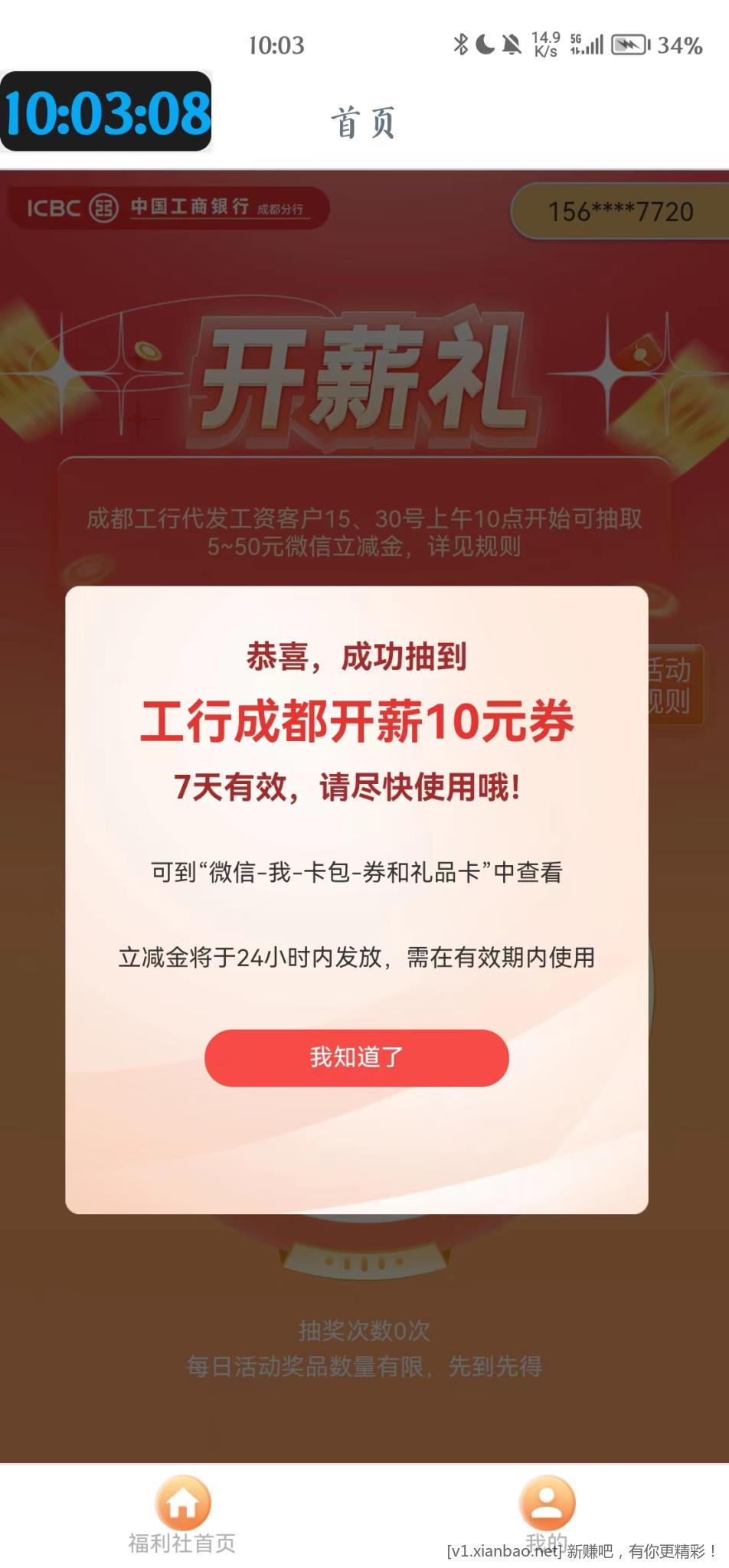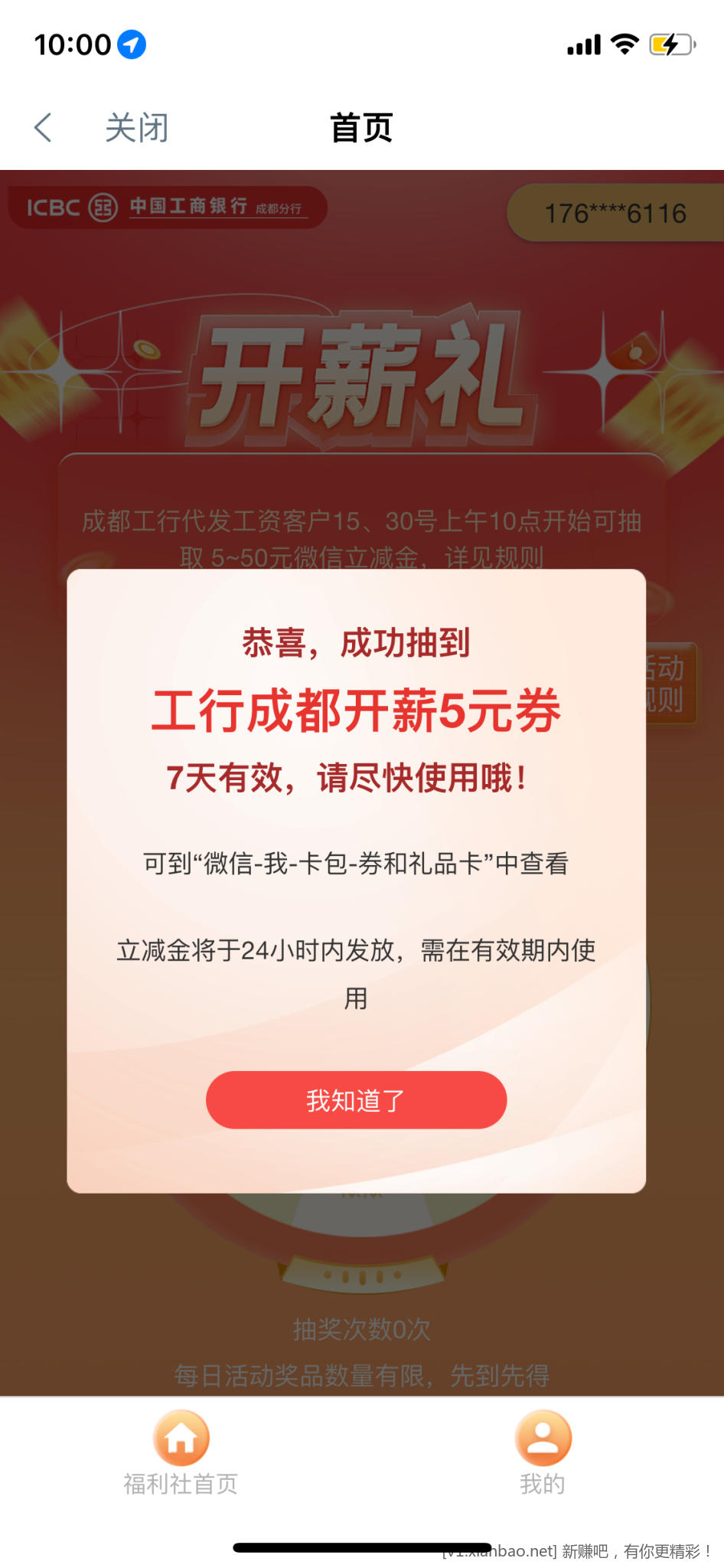 工行App - 搜“工银成都” - 精选活动“福利社”- “代发工资”- 开薪礼