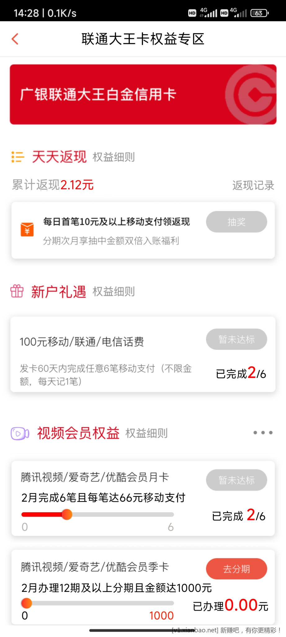 前两天激活了广银xyk,研究了一下羊毛,我的是联通大王联名卡
