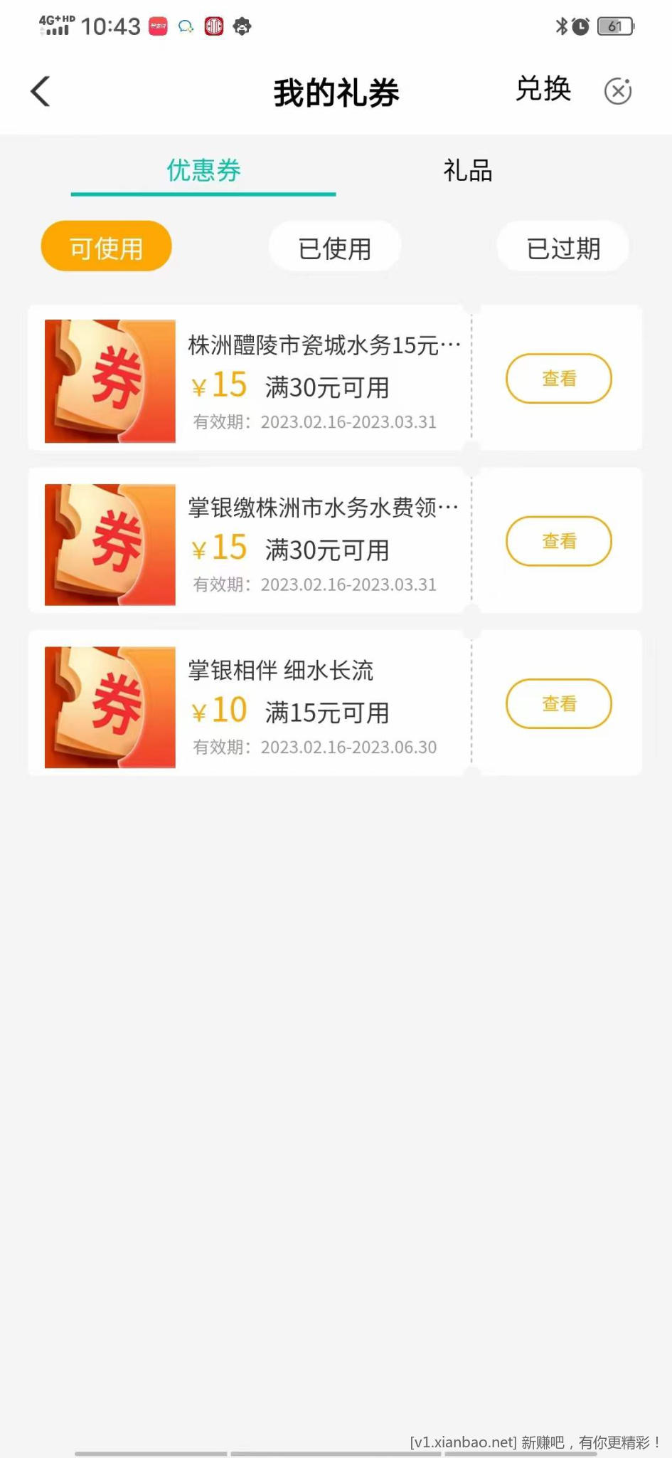 农行app – 城市专区 – 株洲 – 领券中心,领30-15和15-10水费优惠券