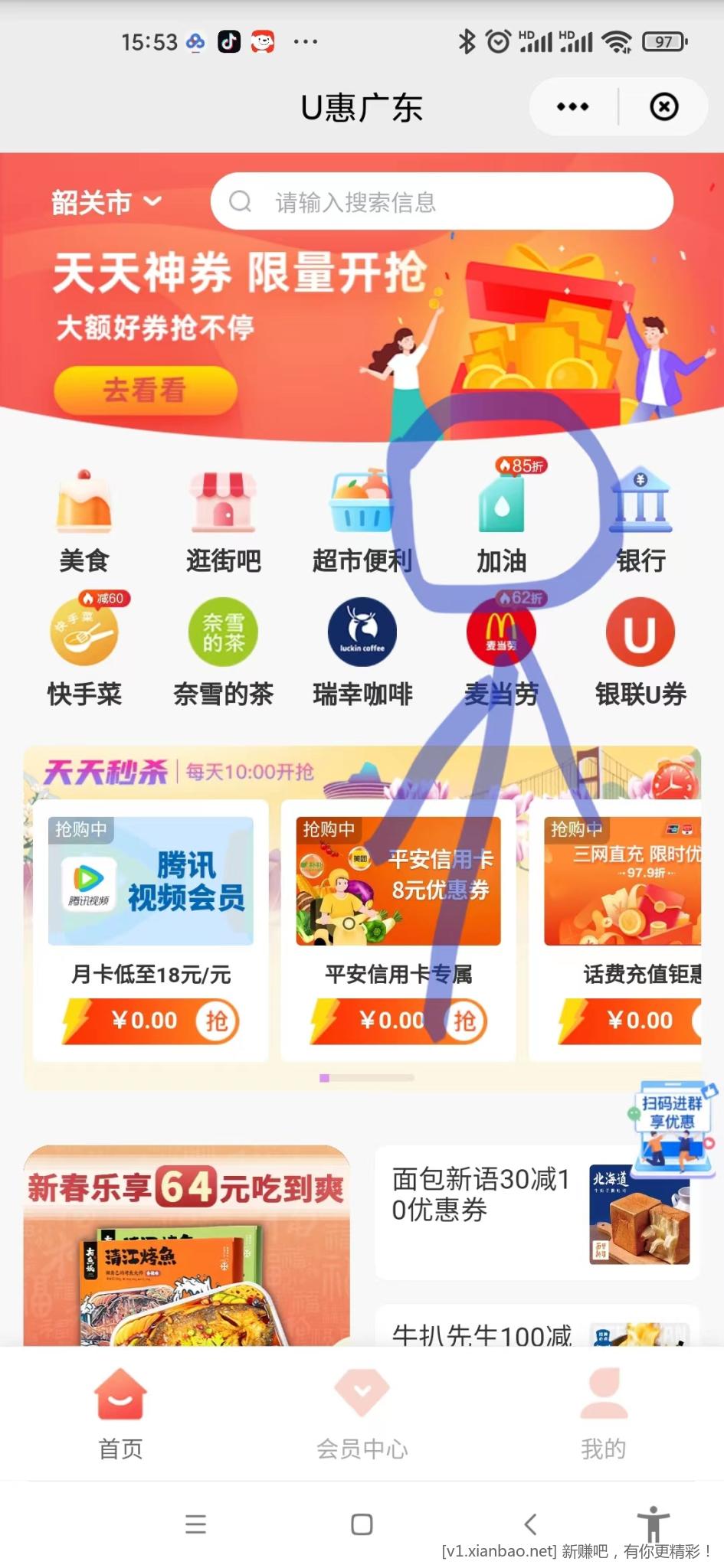 ysfAPP——U惠广东(其他省份应该点当地省就可以)——然后是“加油”——进入领取界面