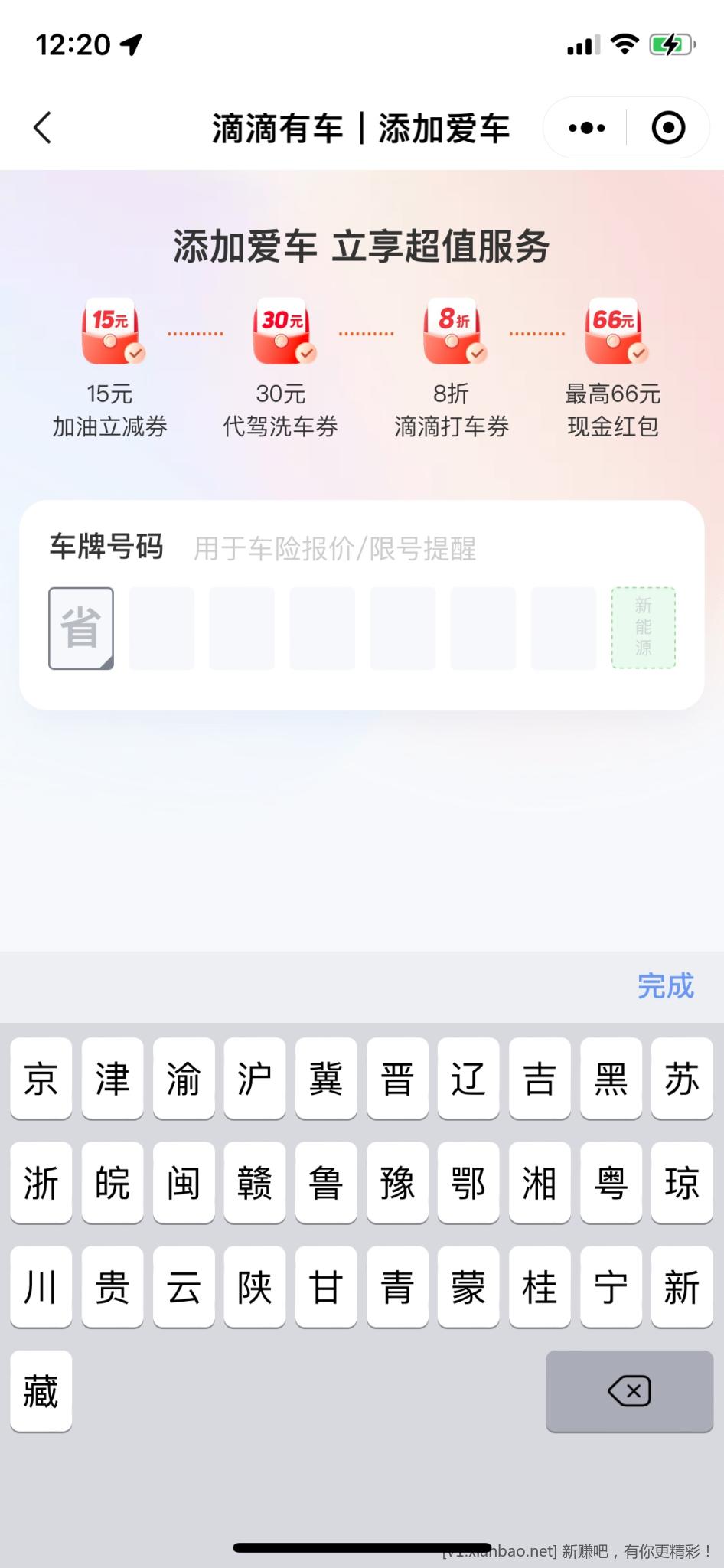 滴滴出行小程序,添加爱车信息乱填,最高66红包