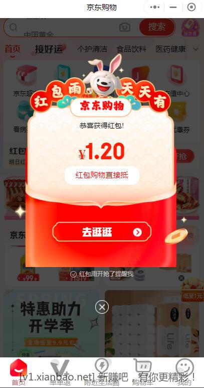 微信搜索【京东购物】小程序-首页中间【红包雨】最高领88元红包