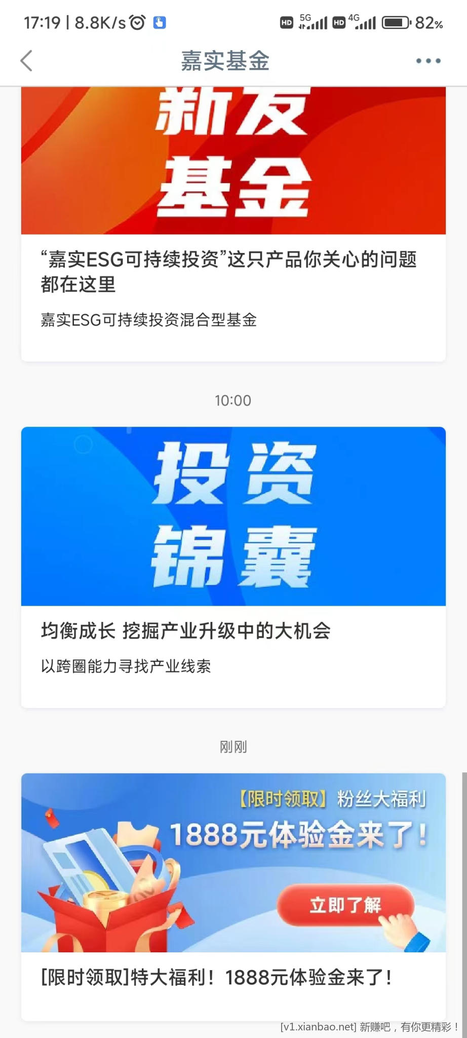 工行app,消息中心,嘉实基金推文,领完第一笔体验金后,点击下方获取更多体验金,总共几W体验金。