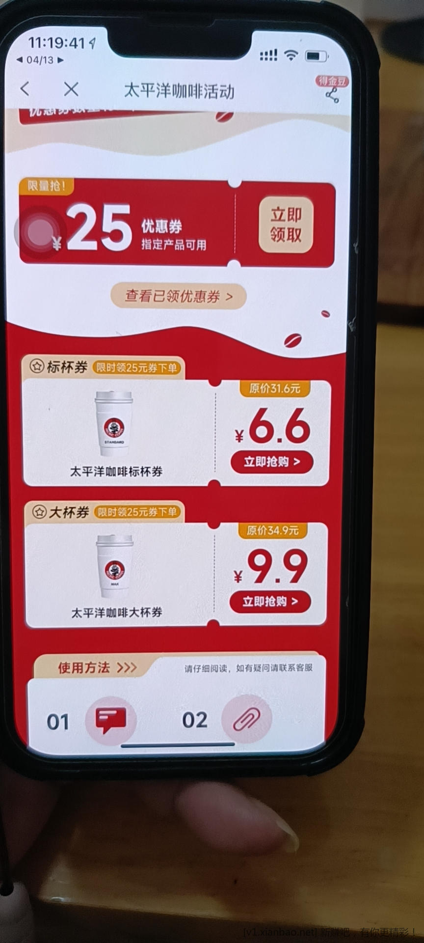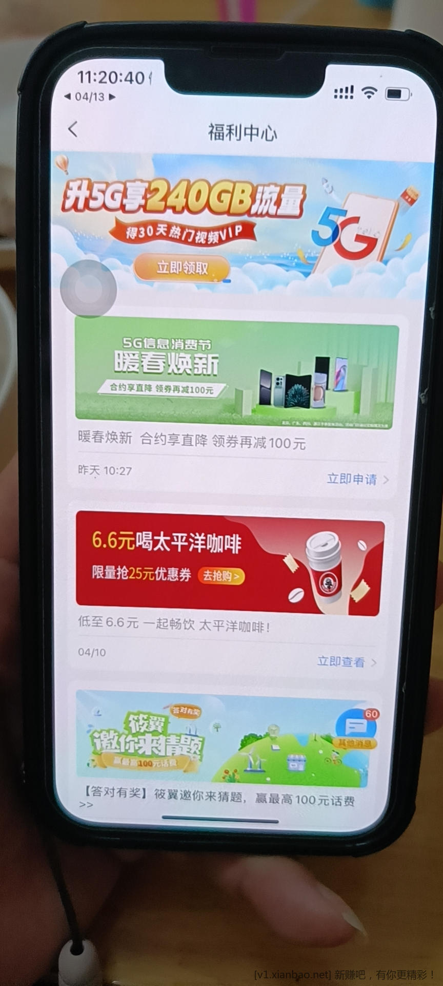 中国电信app→福利中心→6.6喝太平洋咖啡