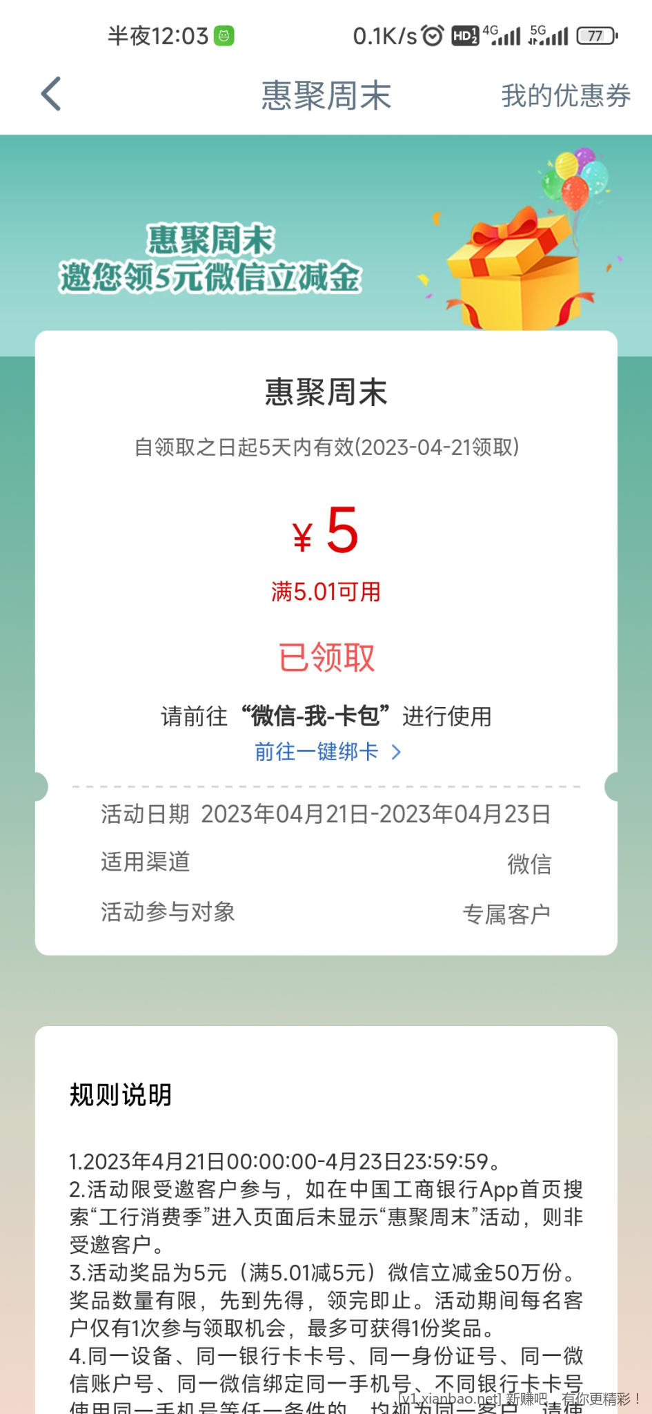 本地服务-工行消费季-惠聚周末5元,可能受邀