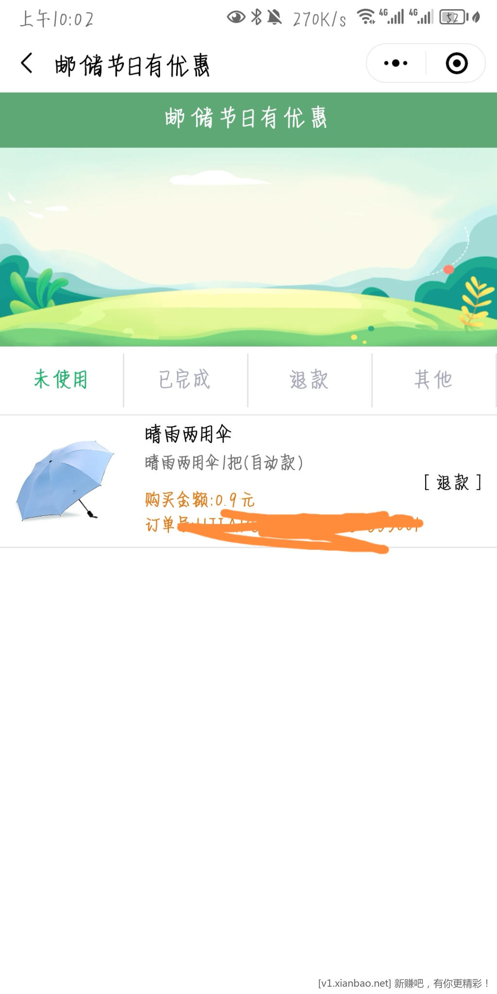 邮储好礼惠终于抢到一次,一把雨伞。不容易