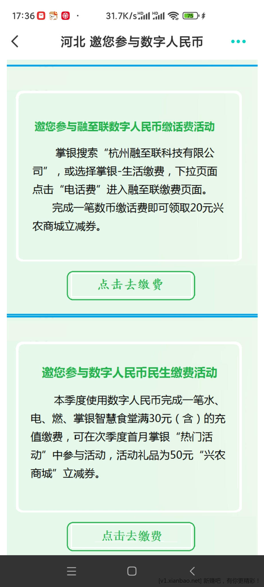 农行(大概是河北)数字冲话费有礼