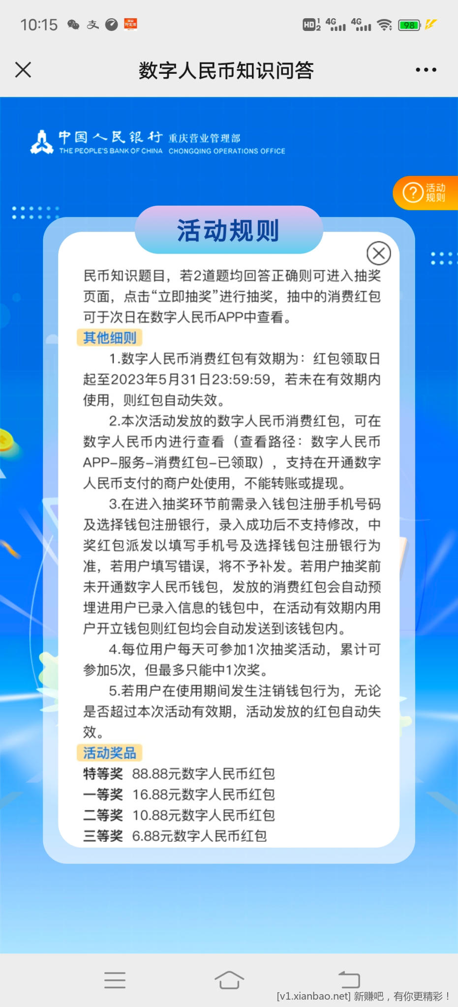 答对两题抽,非必中,现在可以了,不知限不限地区,自测