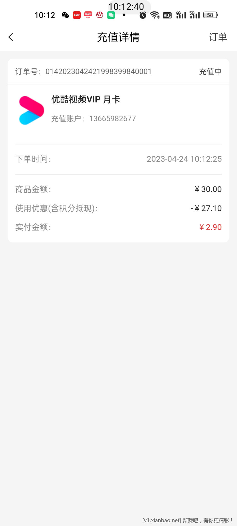 临时临急抱佛脚亏了2毛……动卡空间……生活……影音娱乐……2.9看片……优酷,有存货冲