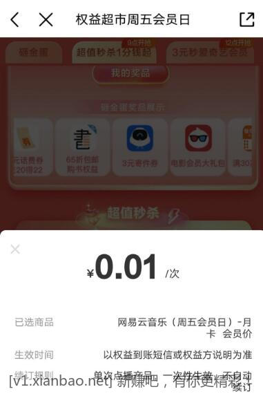 移动周五会员日1分钱网易云月卡