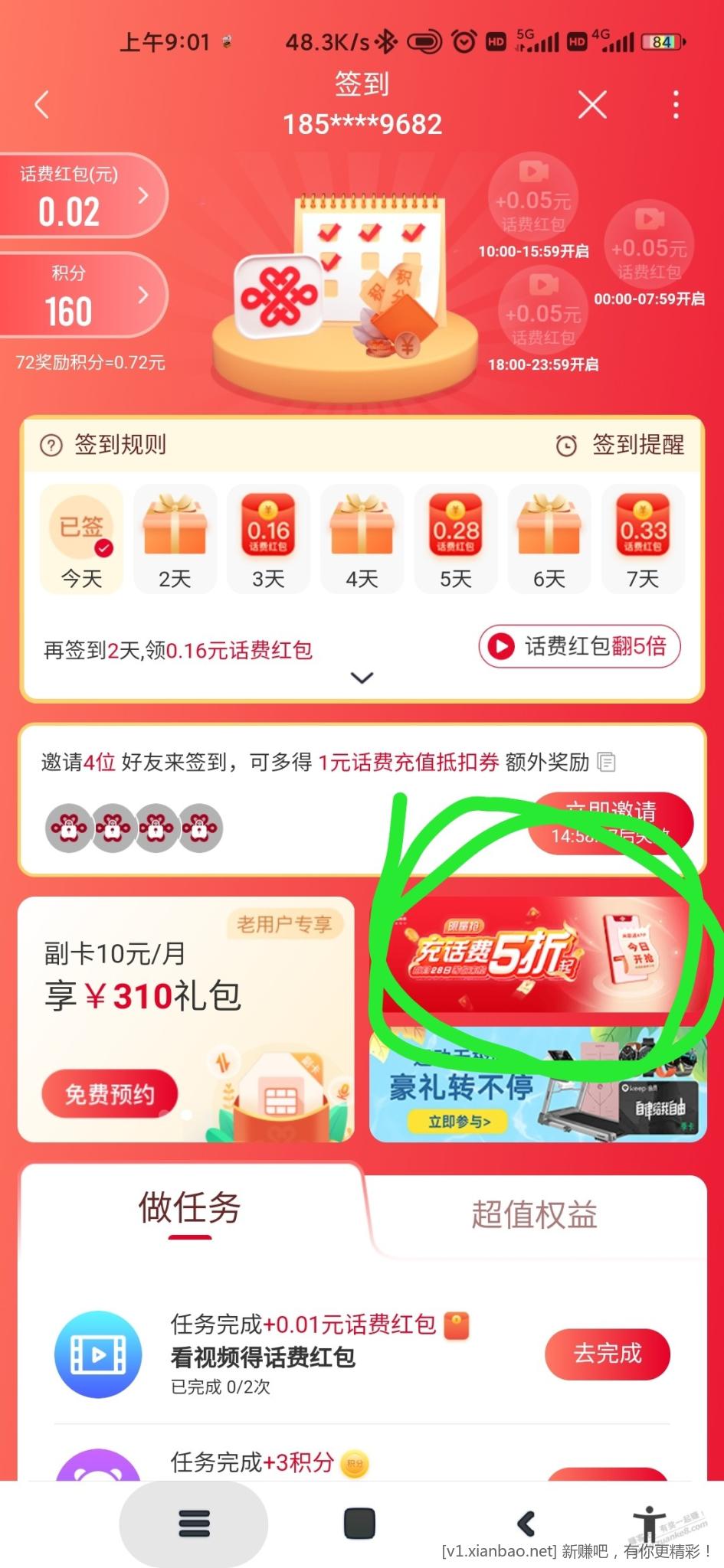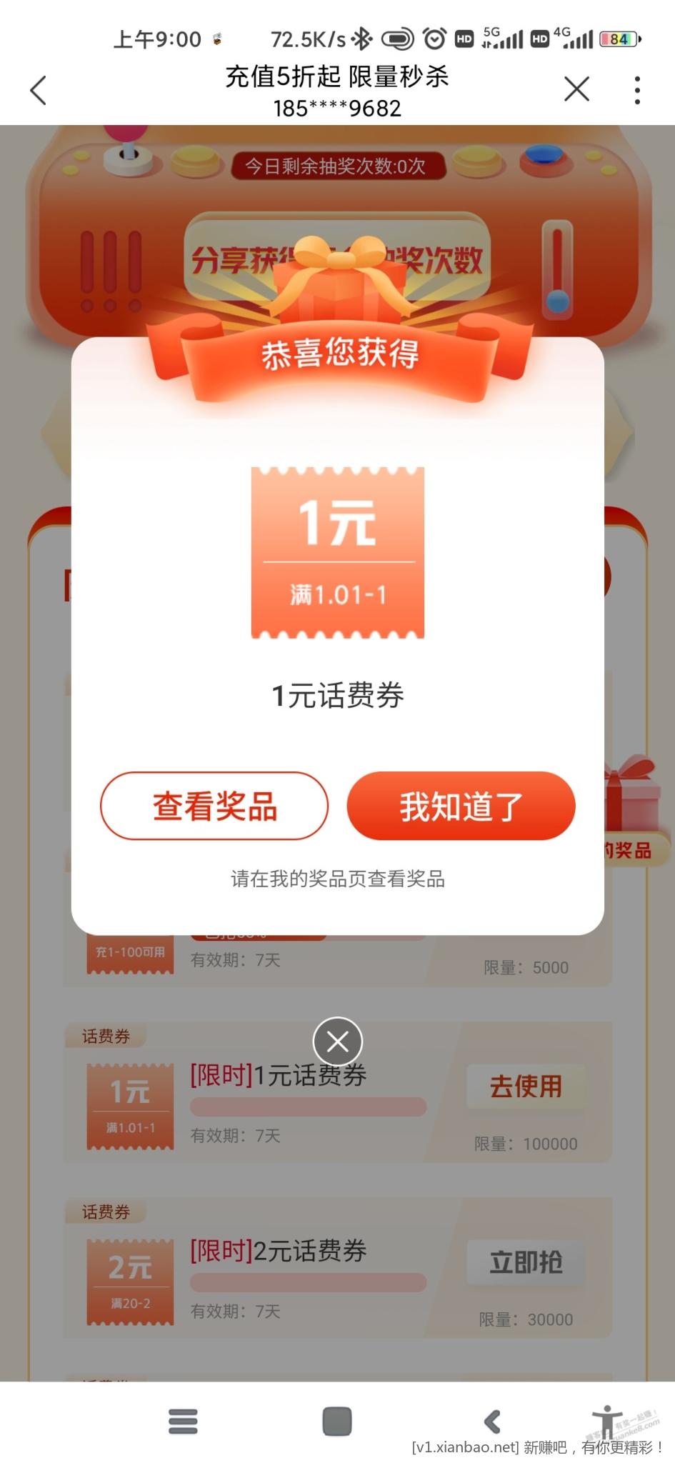 上面抽奖还可以中一次1.0-1话费券充值1.1用积分再抵扣0.1零撸