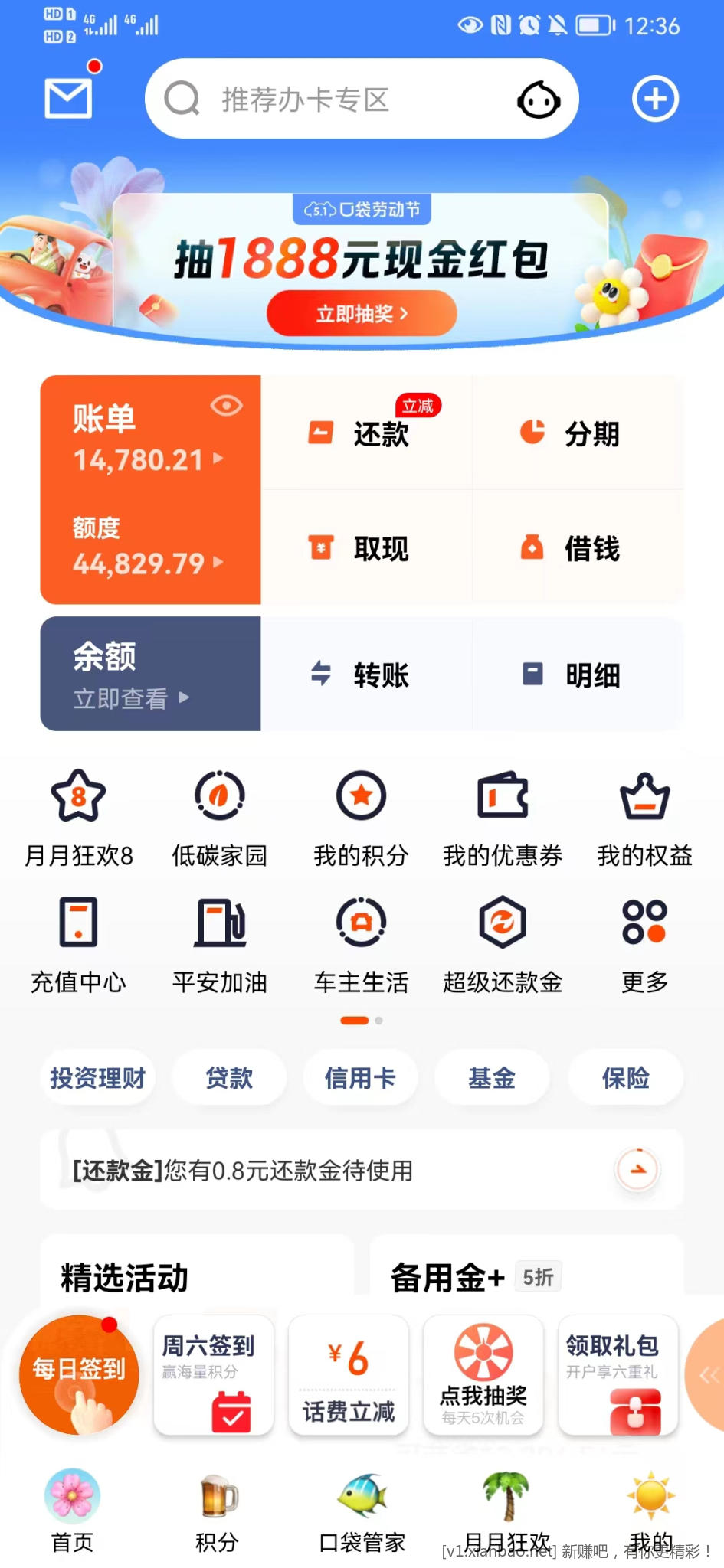 平安口袋银行APP首页顶部横幅点进去抽奖,有红包和体验金。冲啊