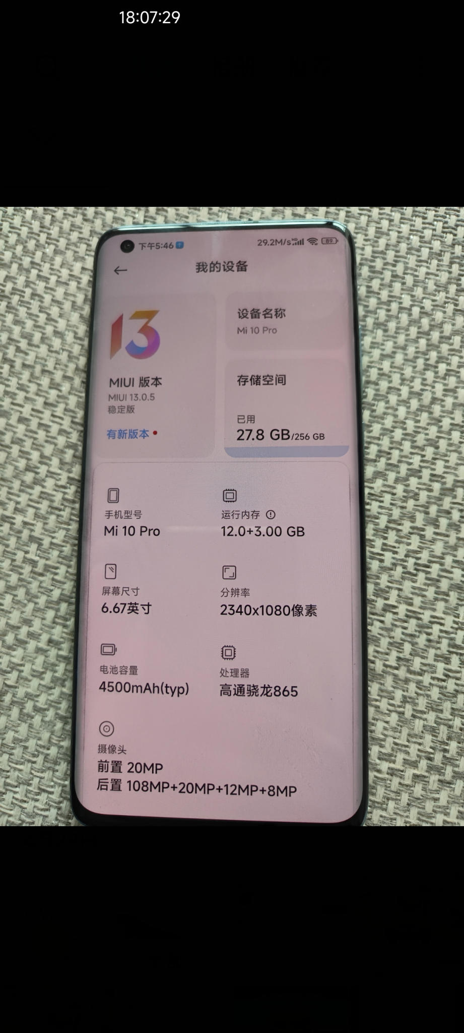 今天捡漏的是小米10Pro 12+256星空蓝,609元包邮。验机报告入图一。到手实测后摄正常,屏幕无烧屏无漏液,后盖碎,手机无锁,无售后维修记录。屏幕指纹正常人脸正常。总的来说这次捡漏血赚最少300+