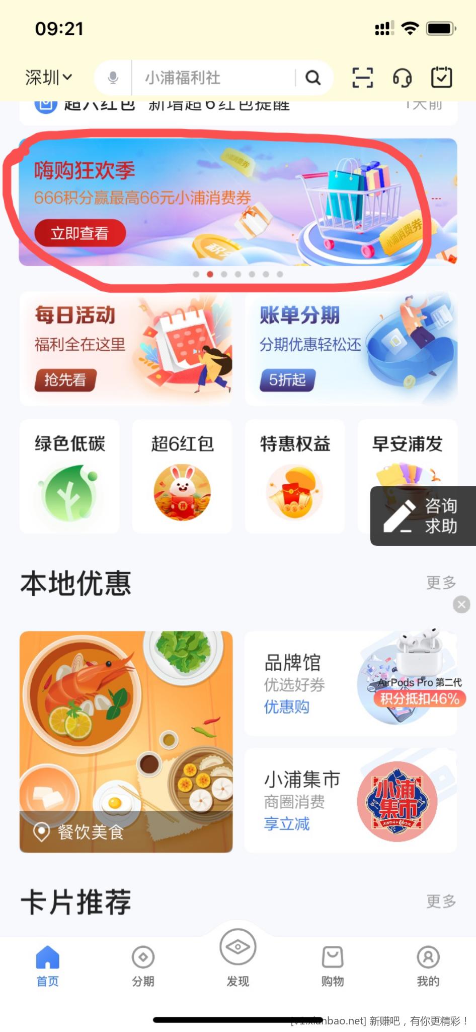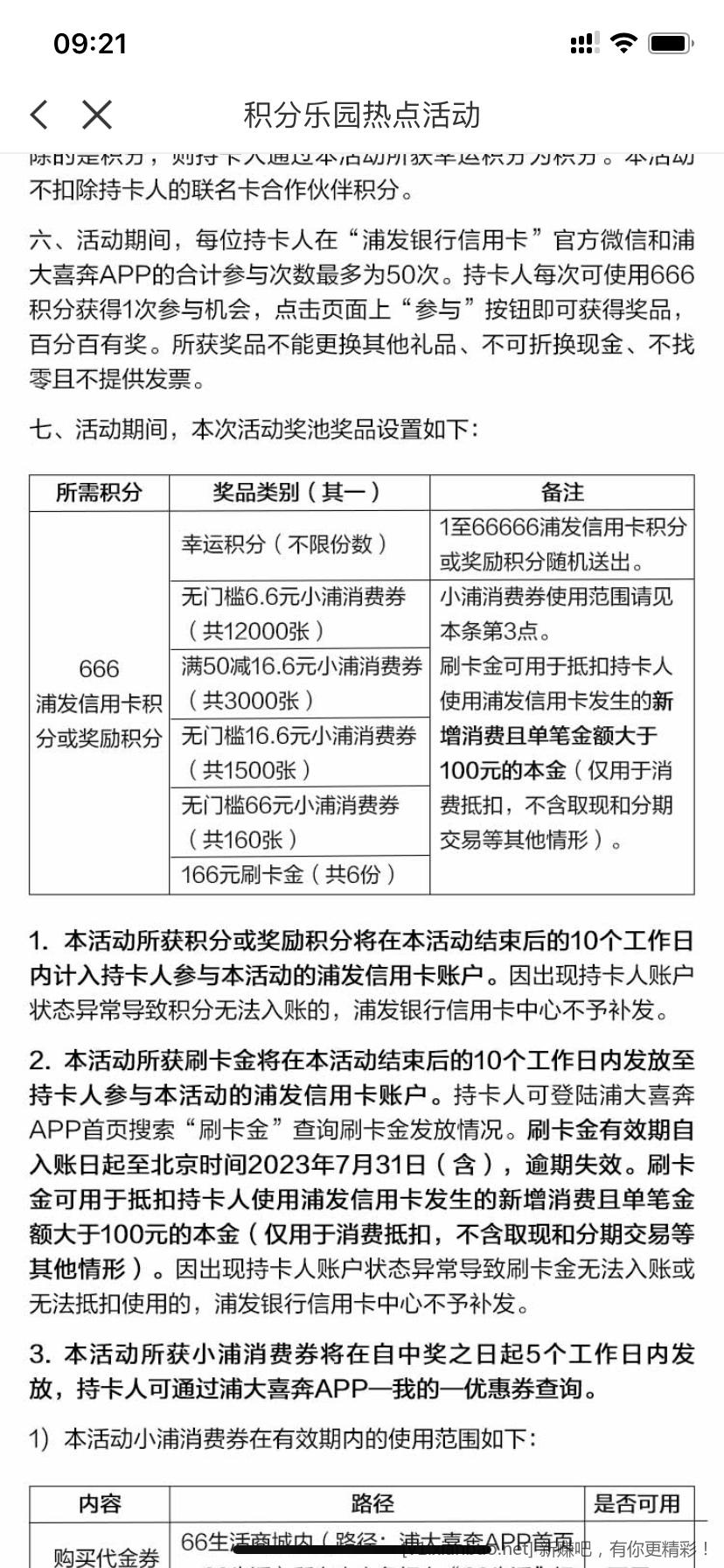 喜大普奔App 浦发xing/用卡 积分抽奖 有水