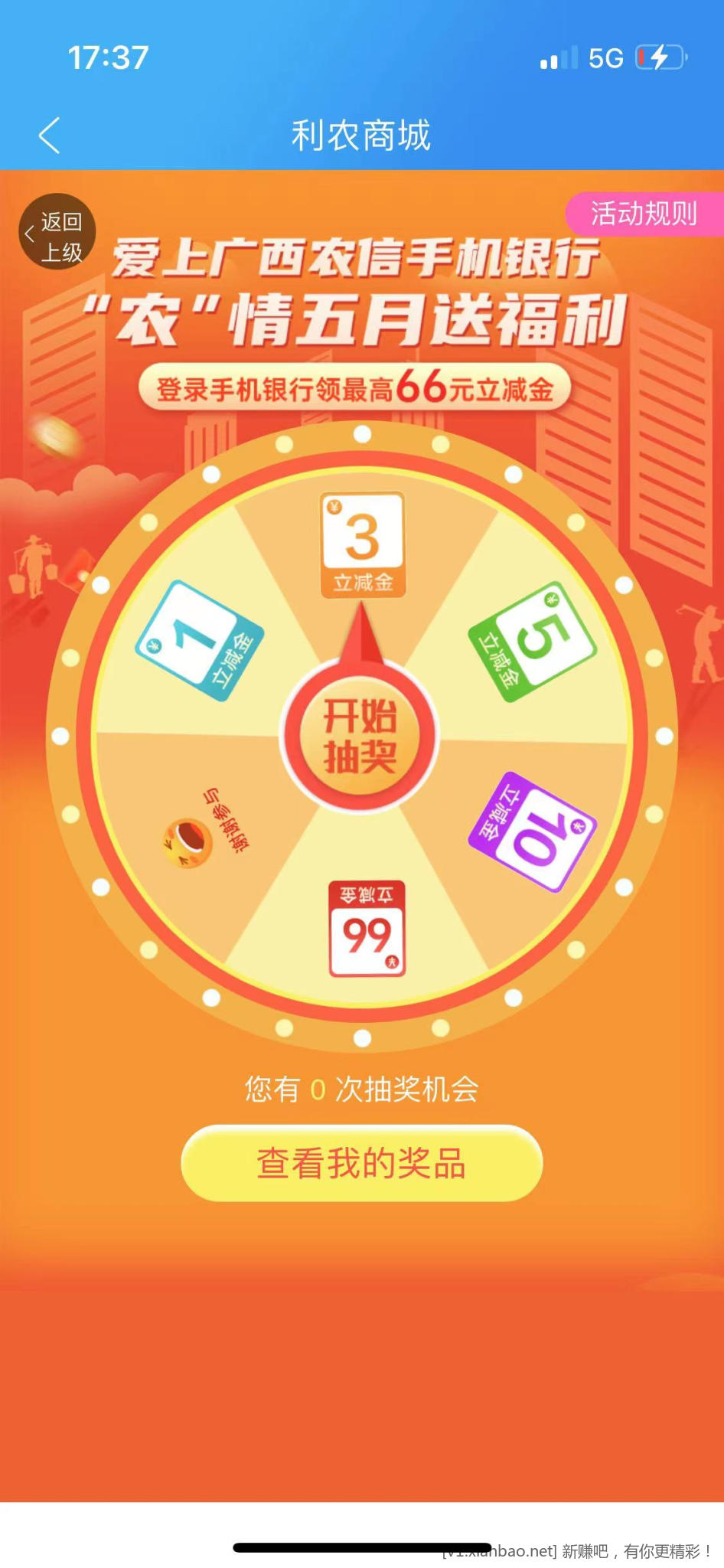 广西农信APP-生活-利农商城-“农”情五月送福利,我只中了3块