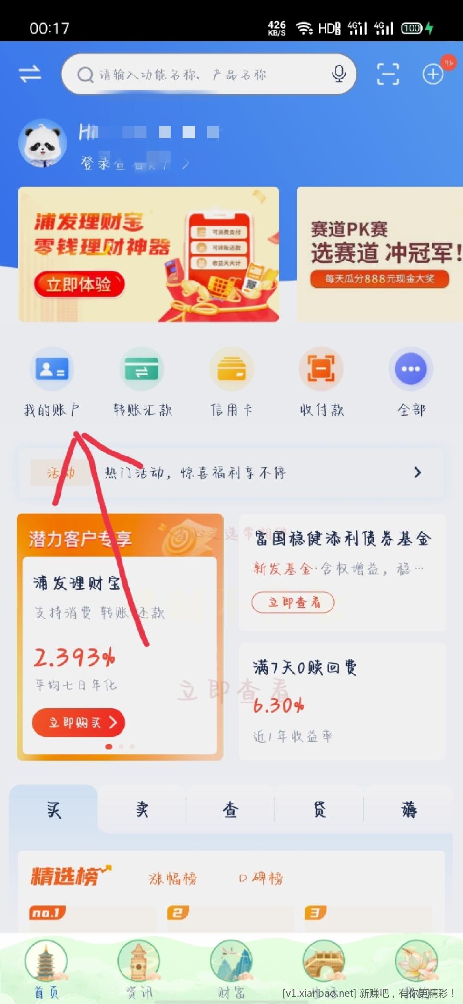 浦发app首页,我的账户,浦发绑定卡和参加有礼开花的绑定卡是同一张,然后去充值(至少100),有礼开花就有流水记录了。