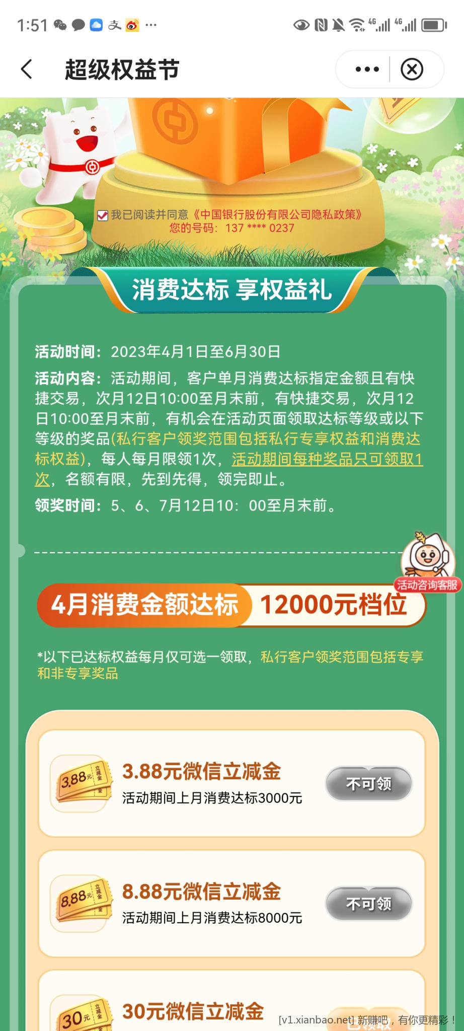 限广东(深圳用户除外) 中国银行APP,生活,E卡惠,滚动幅,超级权益缤纷汇,超级权益...